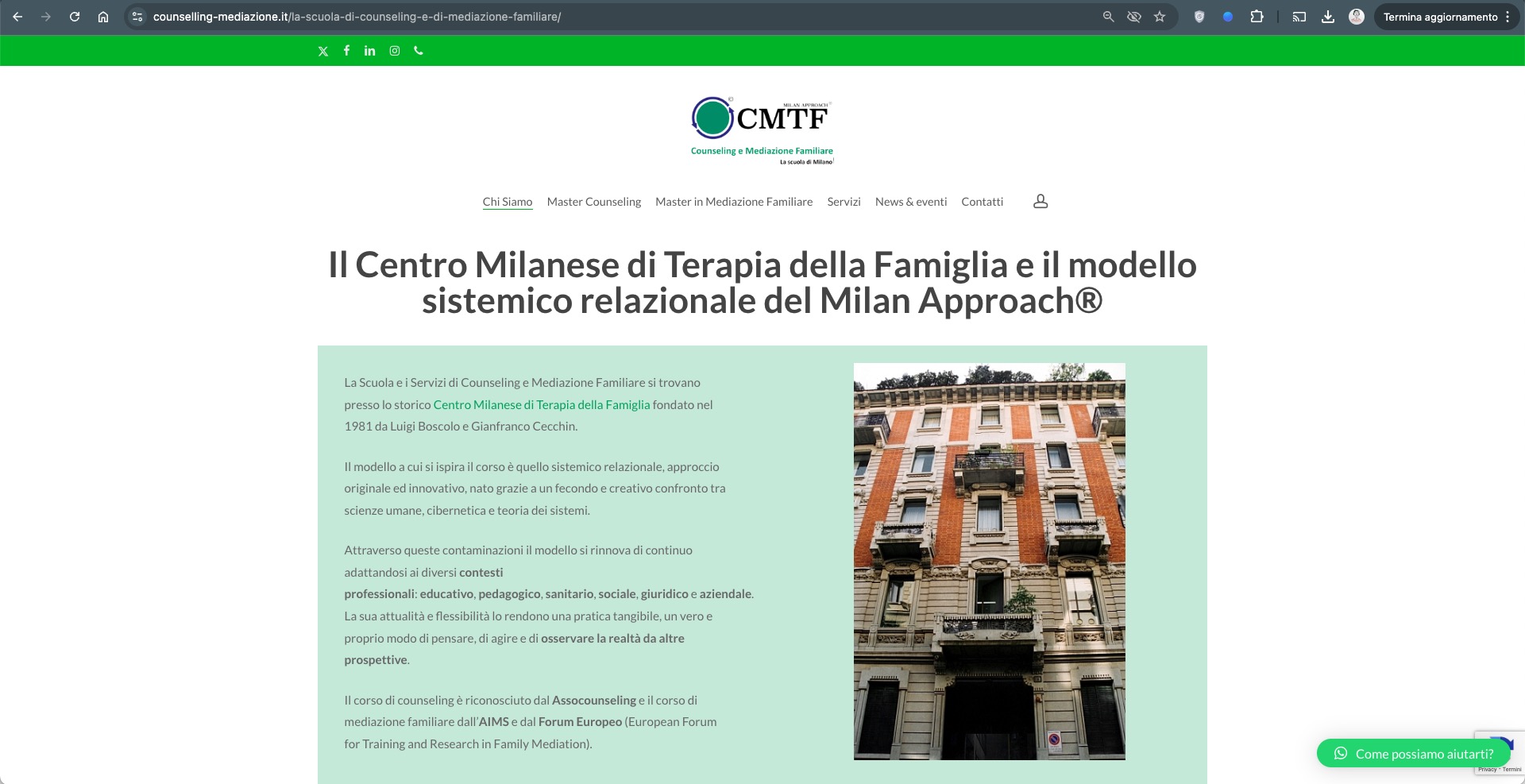 La Scuola e i Servizi di Counseling e Mediazione Familiare si trovano presso lo storico Centro Milanese di Terapia della Famiglia fondato nel 1981 da Luigi Boscolo e Gianfranco Cecchin.